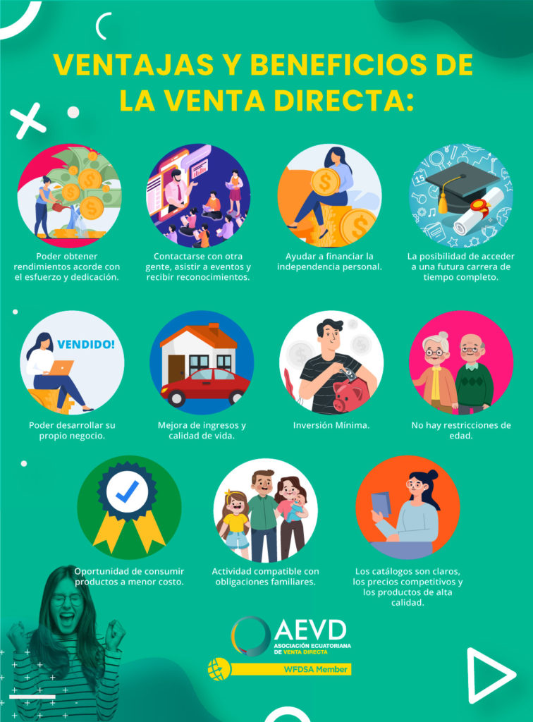 En esta infografía destacamos las principales ventajas y beneficios que ofrece la Venta Directa como actividad económica legítima, ética y en crecimiento: